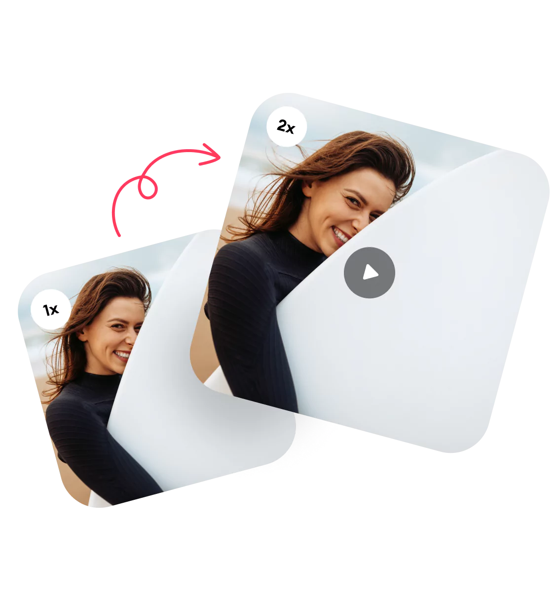 Amplify the quality and size of your videos by up to 2x. Say goodbye to blurry, old, or low-quality footage. AI can reconstruct and enhance every detail. Witness the transformation as your videos come to life with remarkable clarity and vibrant visuals.